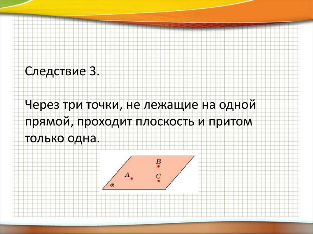 Следствие 3.Через три точки, не лежащие на одной