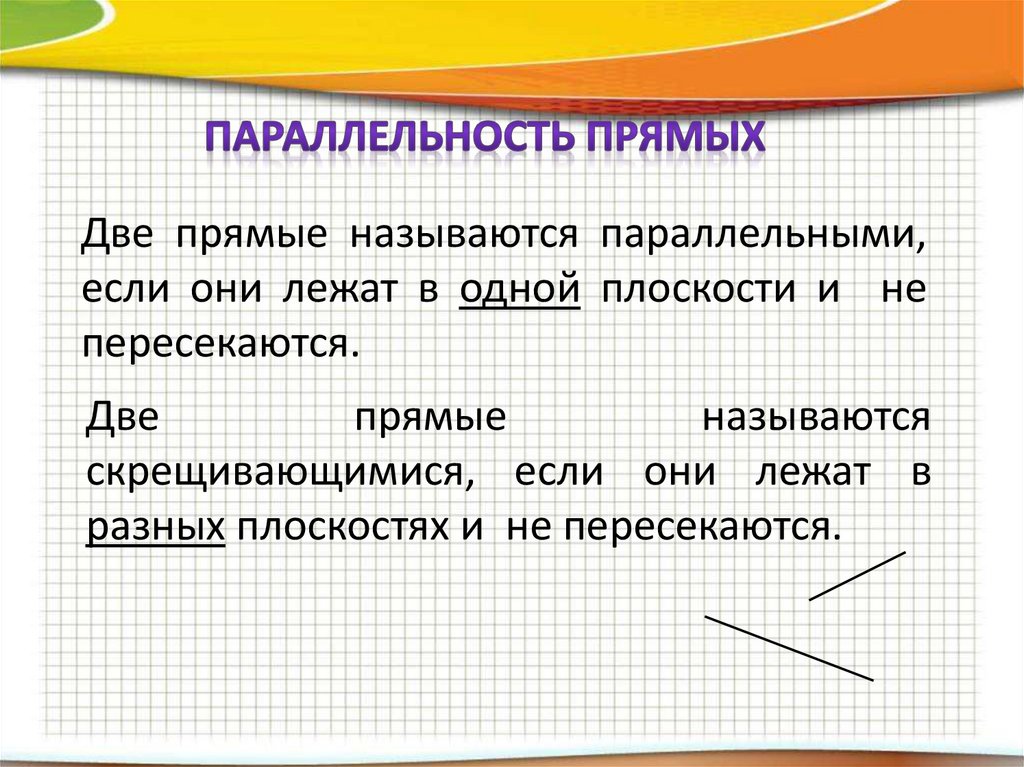 Две прямые называются параллельными,если они лежат в одной плоскости и не