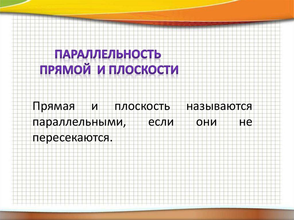 Прямая и плоскость называютсяпараллельными,