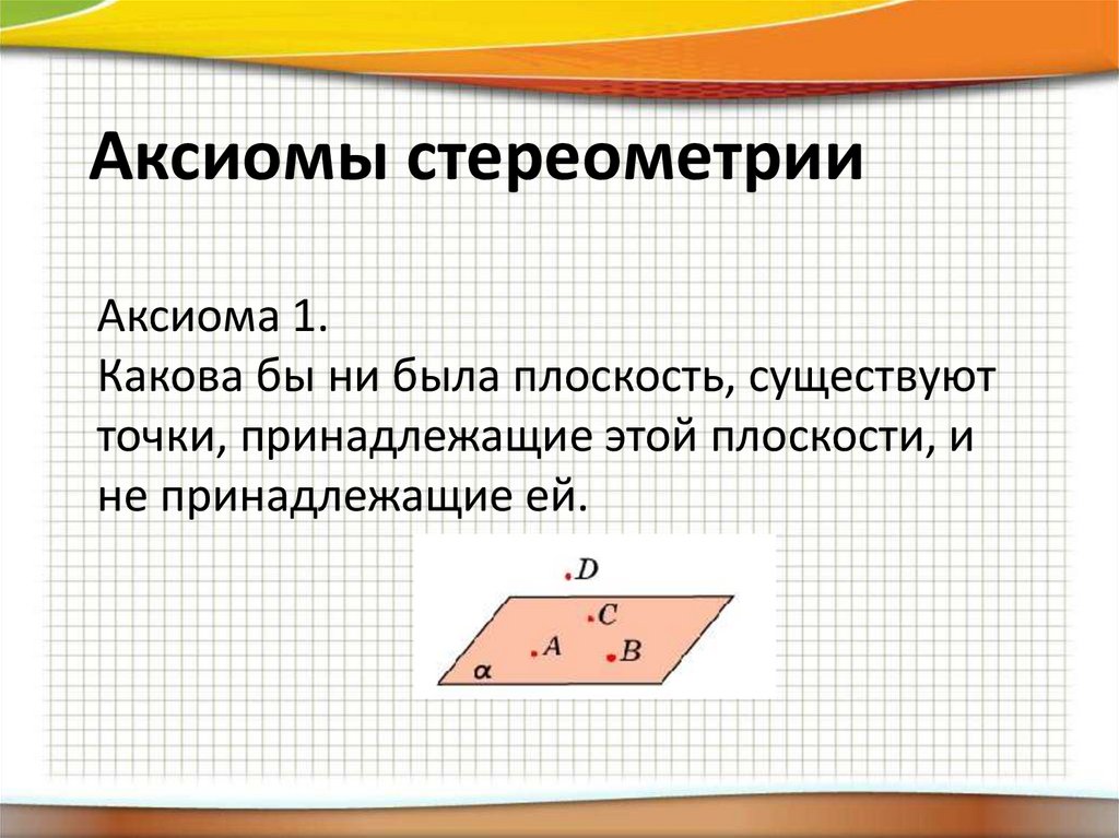 Аксиомы стереометрииАксиома 1.