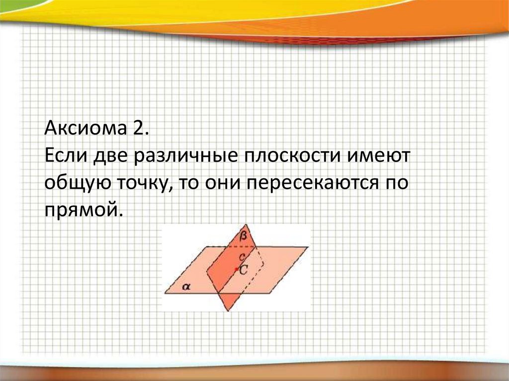 Аксиома 2.Если две различные плоскости имеют