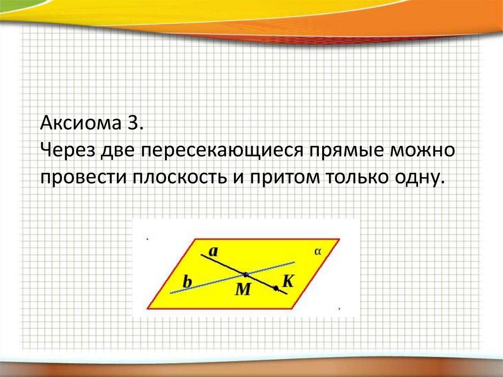 Аксиома 3.Через две пересекающиеся прямые можно