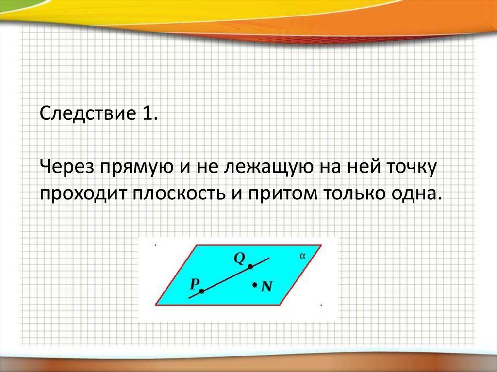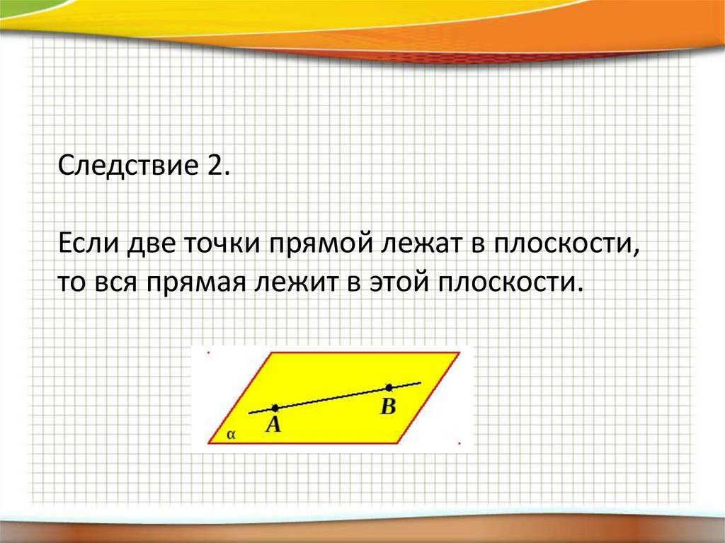 Следствие 2.Если две точки прямой лежат в плоскости,