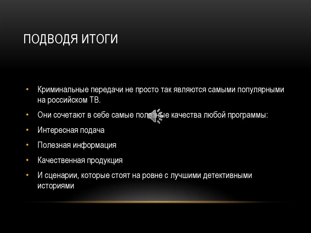 ПОДВОДЯ ИТОГИ• Криминальные передачи не просто так являются самыми популярными