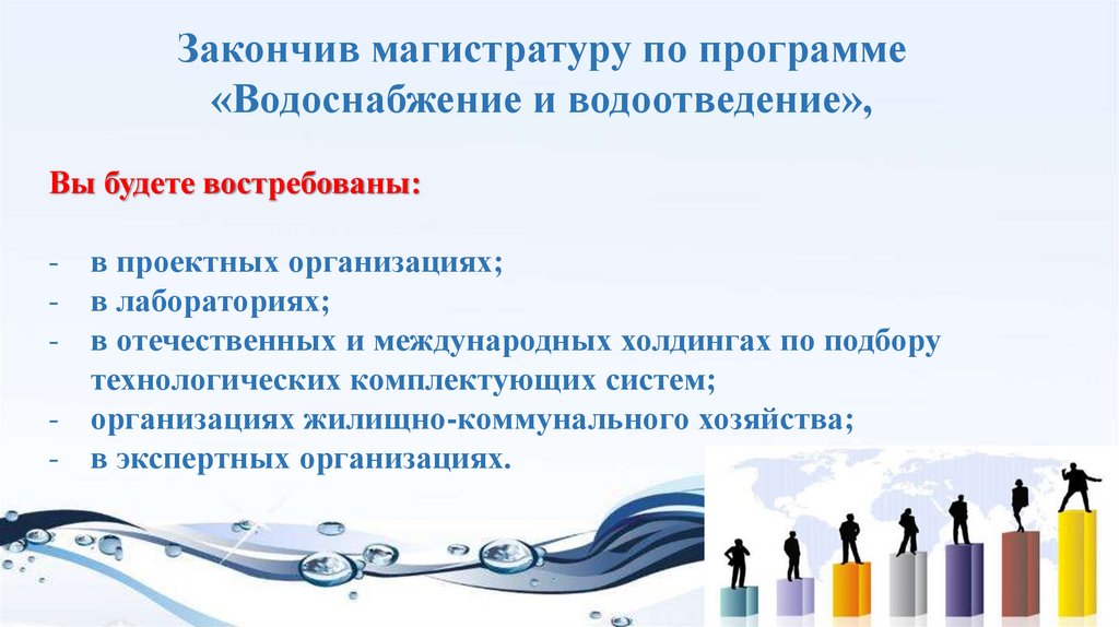 Закончив магистратуру по программе«Водоснабжение и водоотведение»,