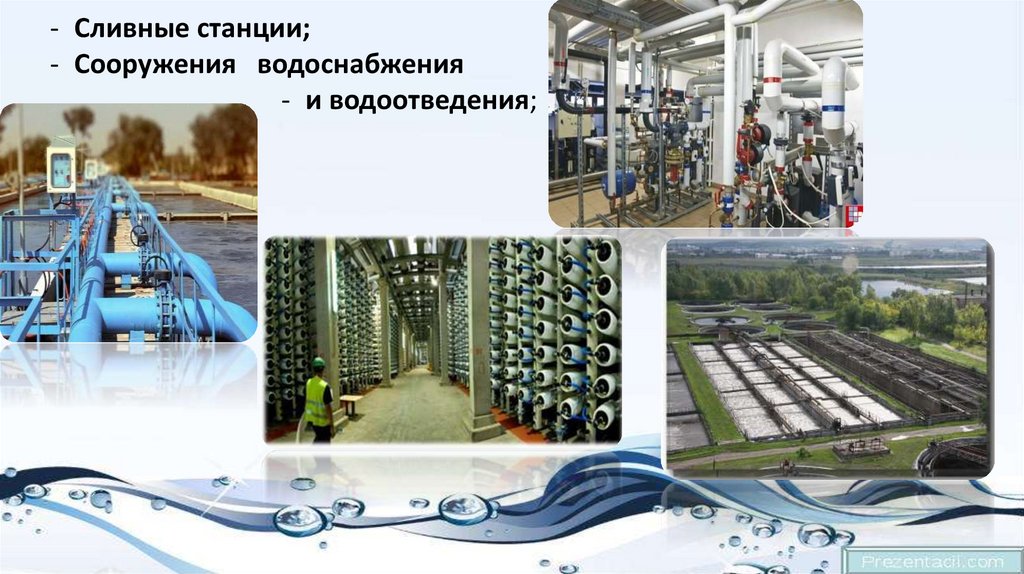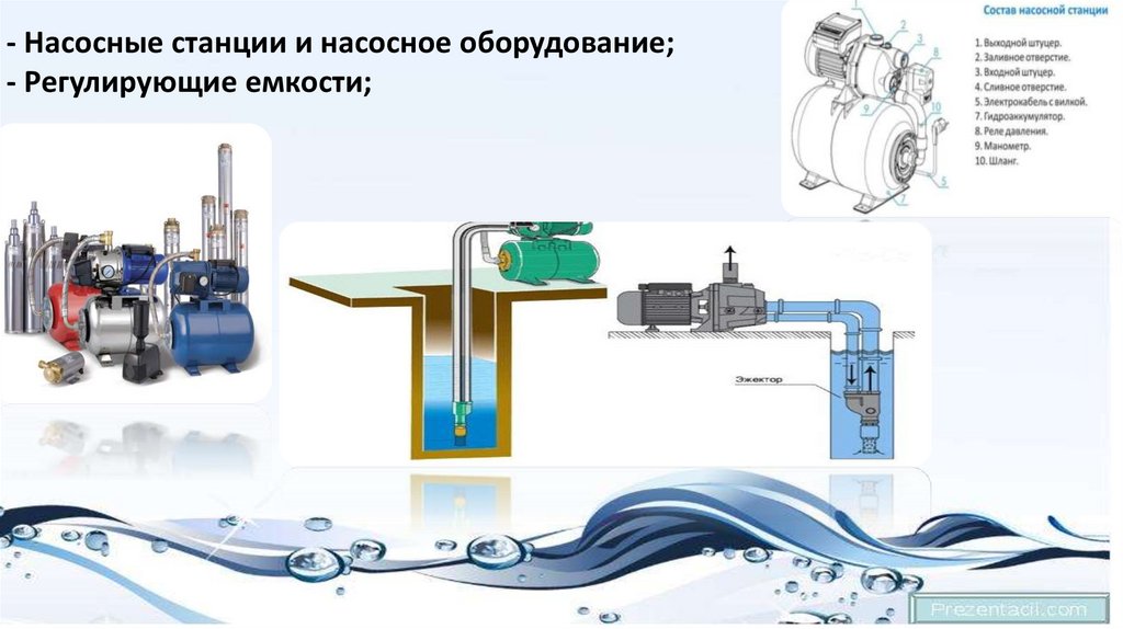 - Насосные станции и насосное оборудование;- Регулирующие емкости;