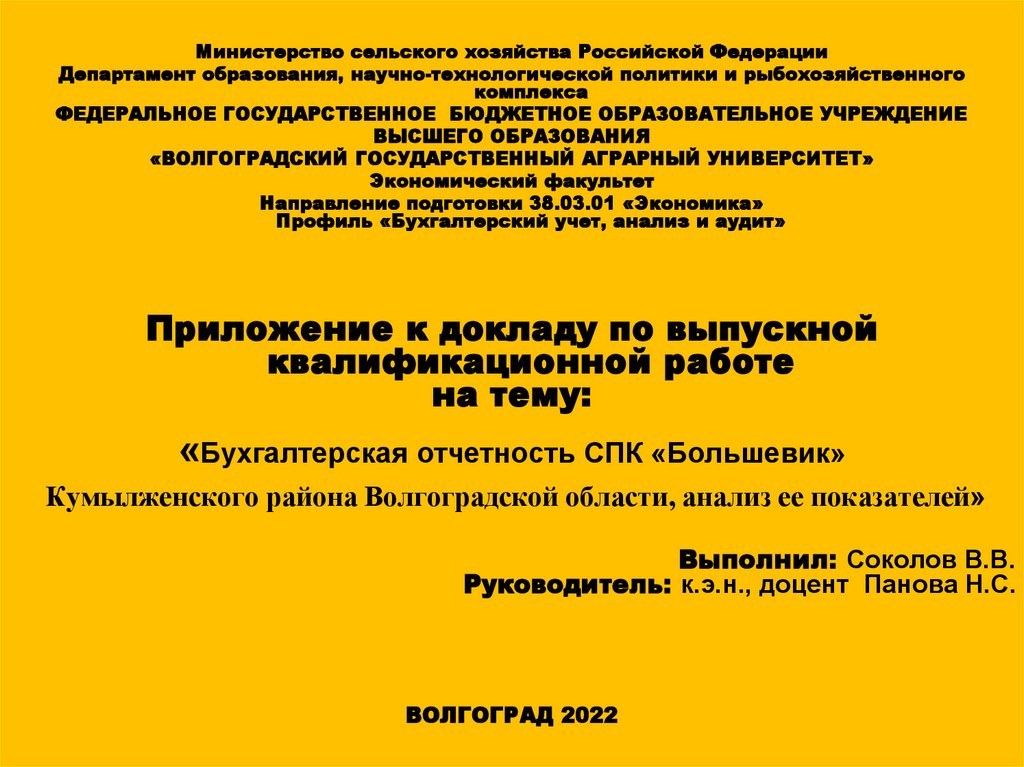 «ВОЛГОГРАДСКИЙ ГОСУДАРСТВЕННЫЙ АГРАРНЫЙ УНИВЕРСИТЕТ»