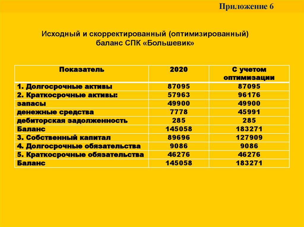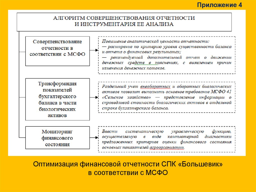 Приложение 4Оптимизация финансовой отчетности СПК «Большевик»