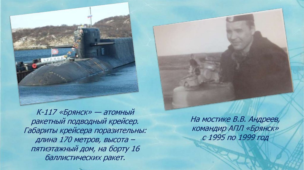 крейсером К-117 «Брянск». На счету Андреева 16 боевых