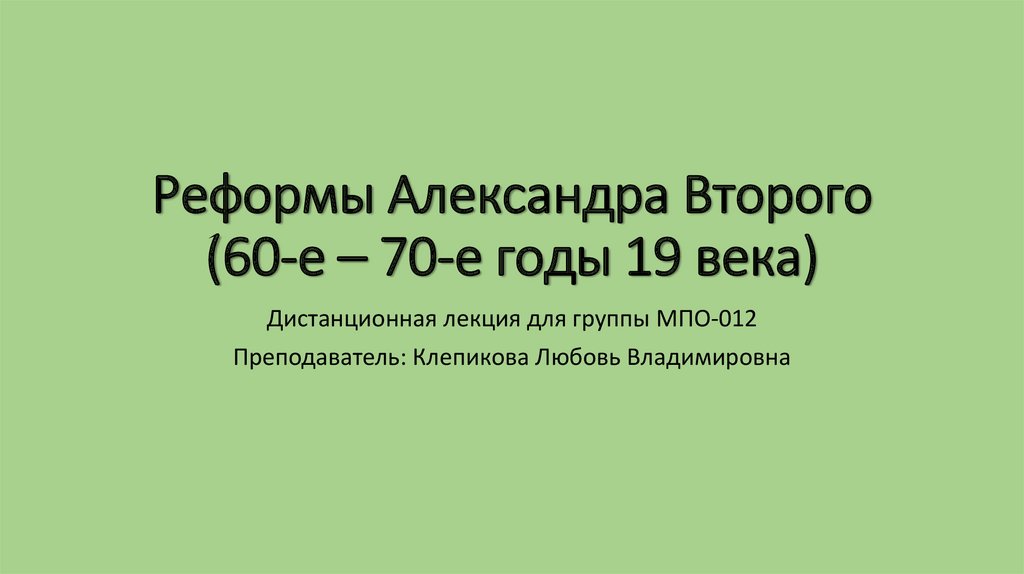 Реформы Александра Второго (60-е – 70-е годы 19 века)