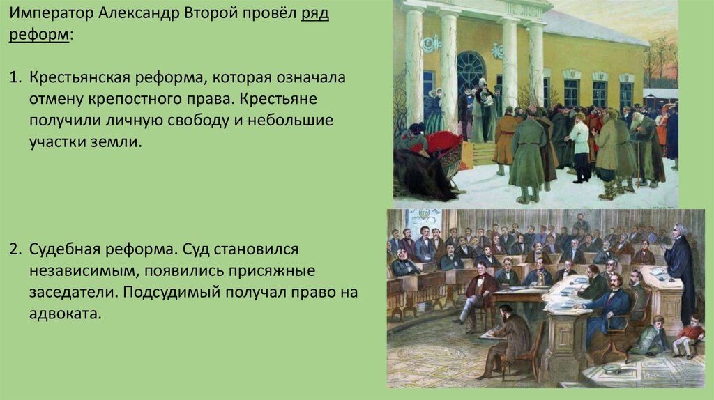 Император Александр Второй провёл рядреформ: