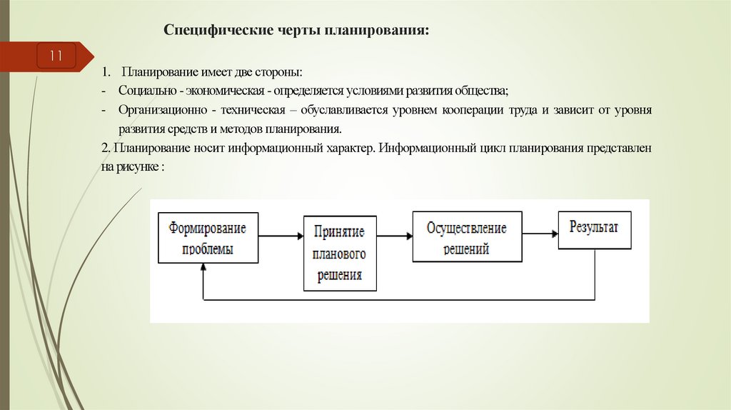 Специфические черты планирования:11