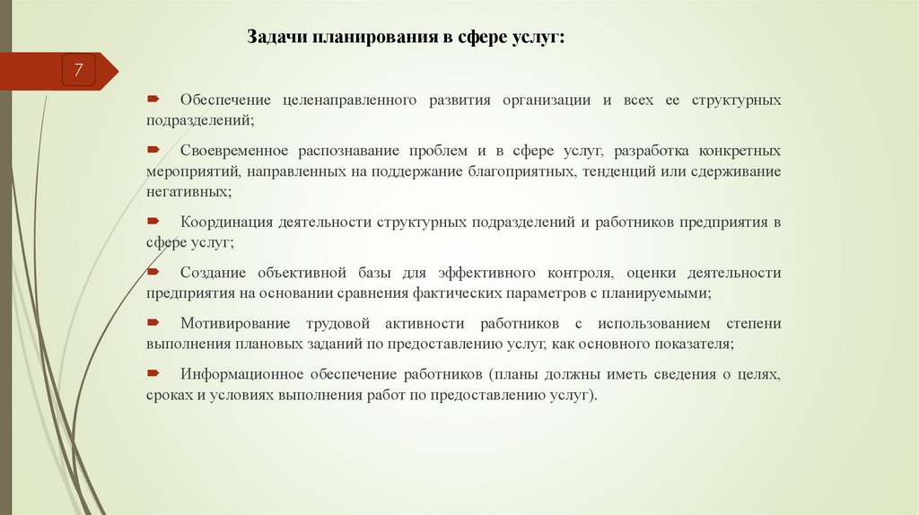 Задачи планирования в сфере услуг:7