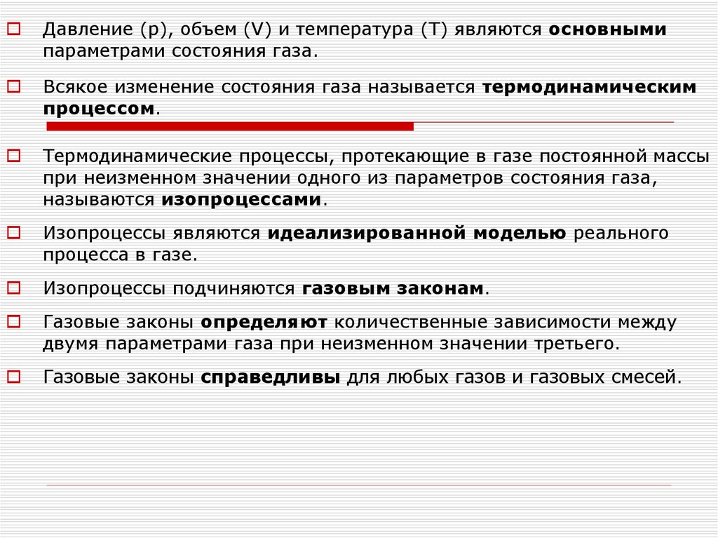 Давление (p), объем (V) и температура (T) являются основнымипараметрами состояния газа.