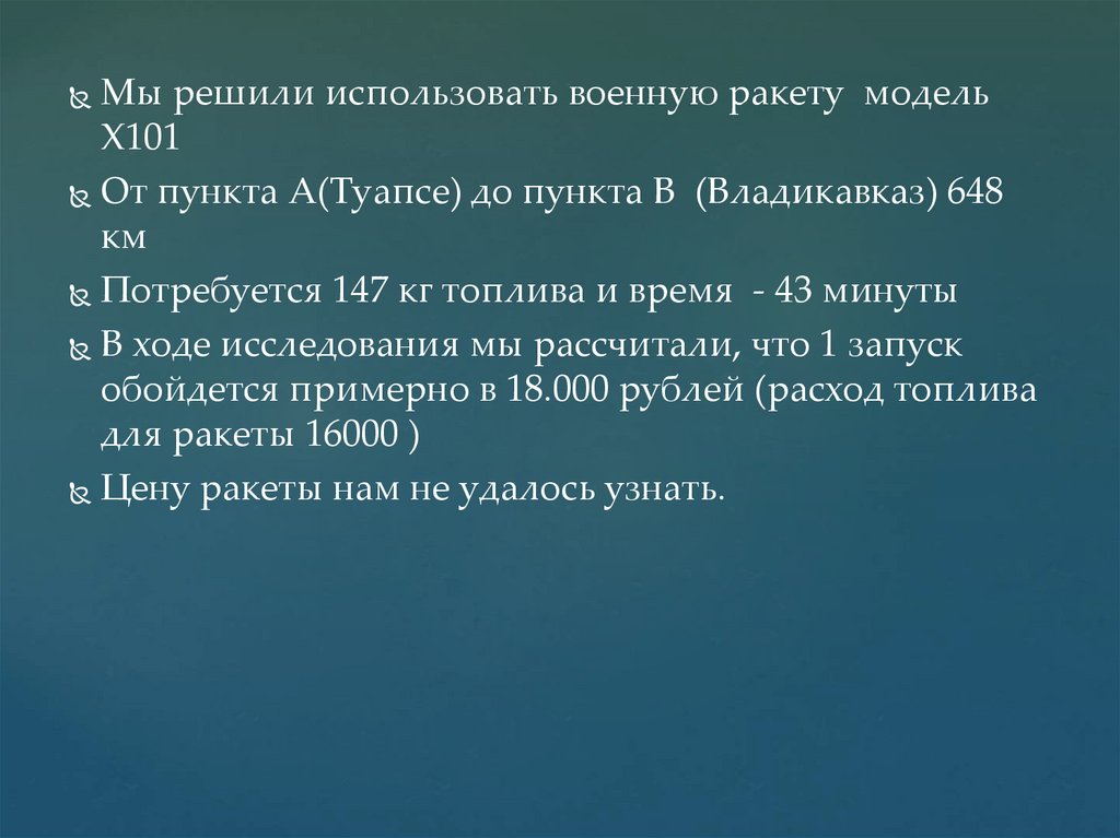 Мы решили использовать военную ракету модельХ101