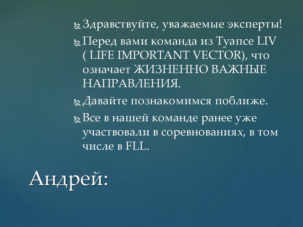 Здравствуйте, уважаемые эксперты!Перед вами команда из Туапсе LIV