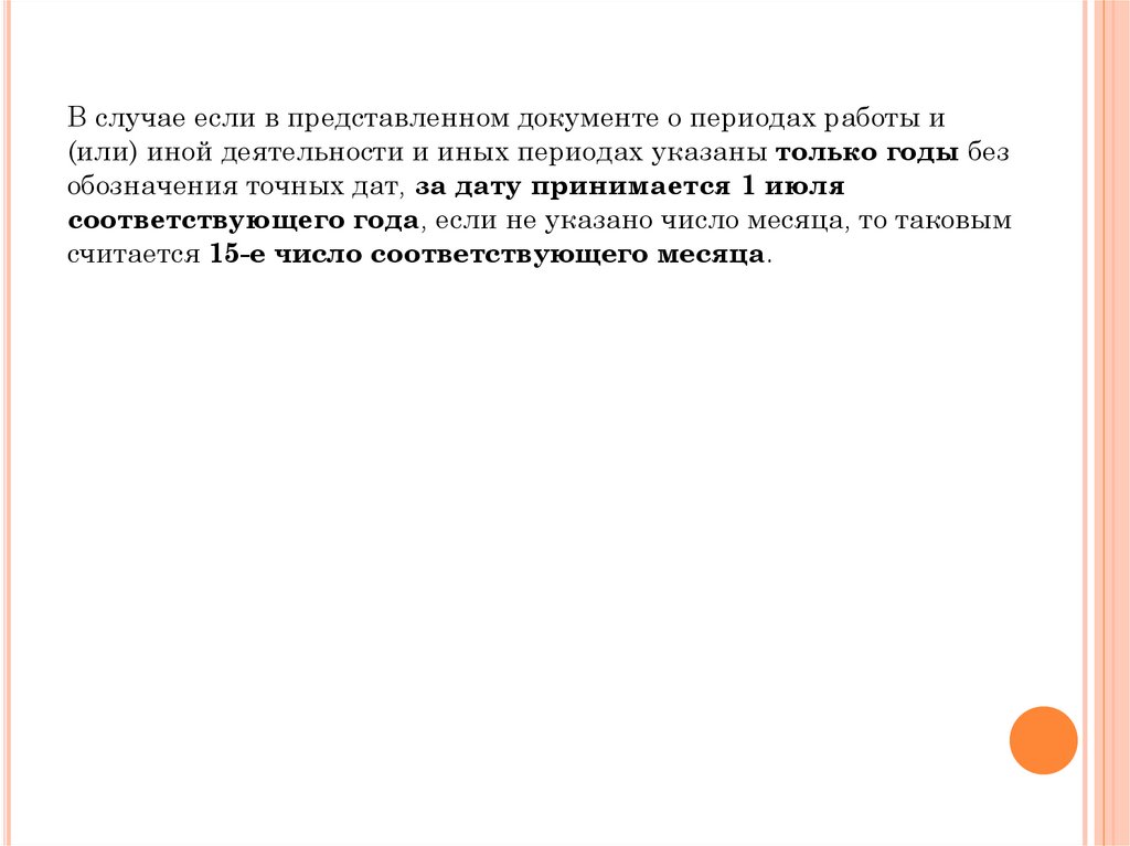 В случае если в представленном документе о периодах работы и(или) иной деятельности и иных периодах указаны только годы без