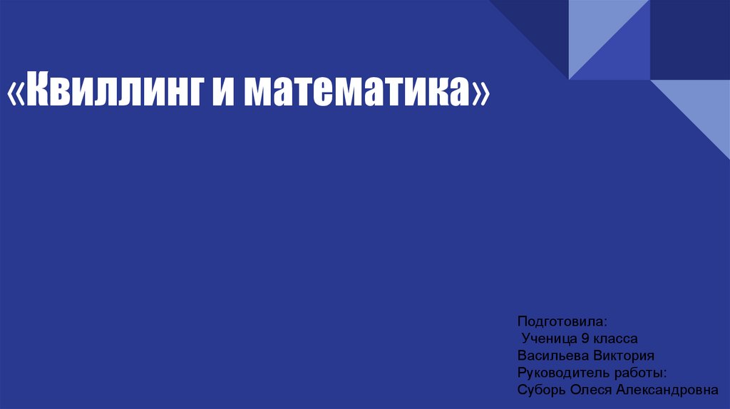 «Квиллинг и математика»Подготовила: