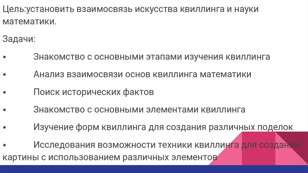 Цель:установить взаимосвязь искусства квиллинга и наукиматематики.
