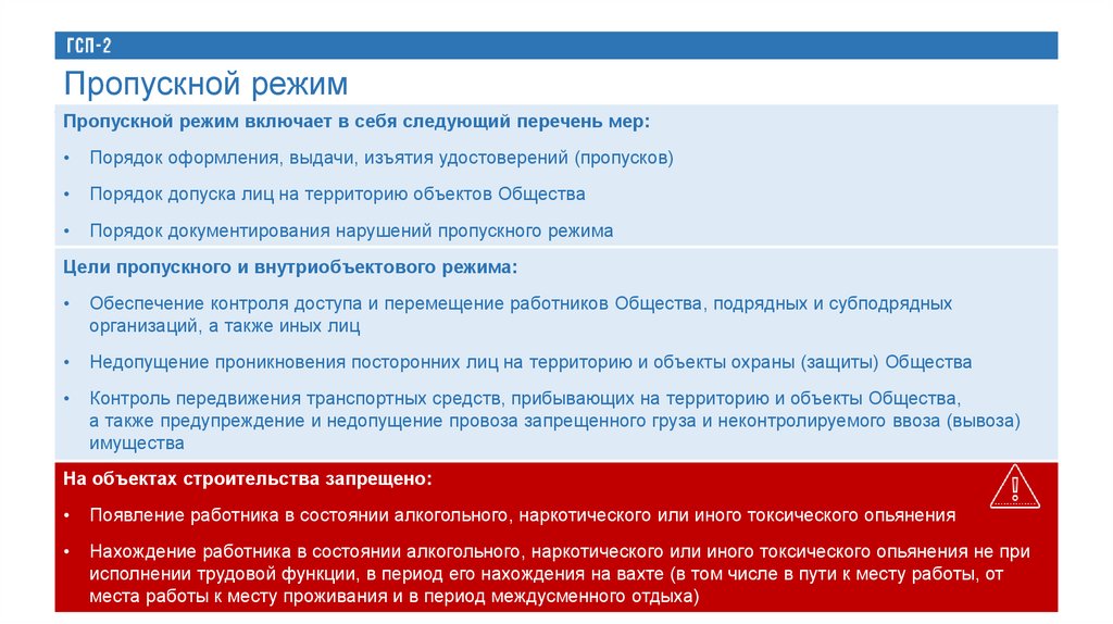 Пропускной режимПропускной режим включает в себя следующий перечень мер: