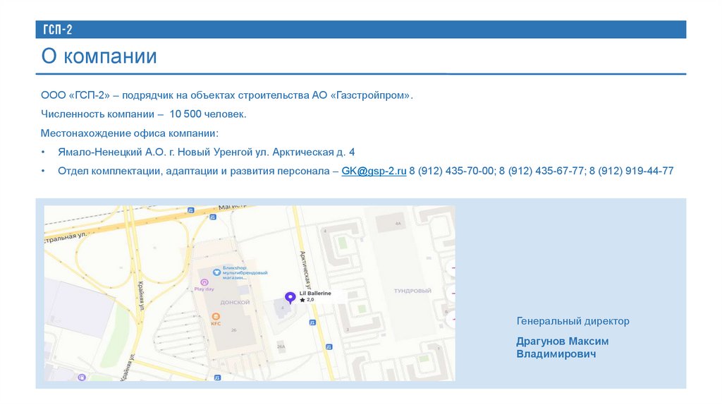 Отдел комплектации, адаптации и развития персонала – GK@gsp-2.ru 8 (912) 435-70-00; 8 (912) 435-67-77; 8 (912) 919-44-77