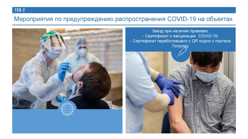 Мероприятия по предупреждению распространения COVID-19 на объектахЗаезд при наличии прививки: