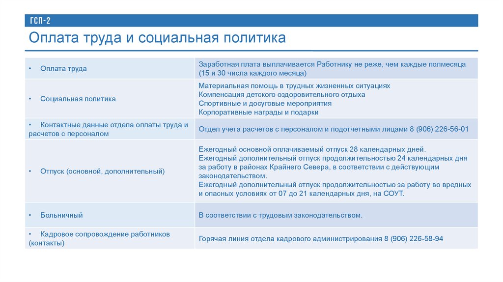 • Контактные данные отдела оплаты труда и