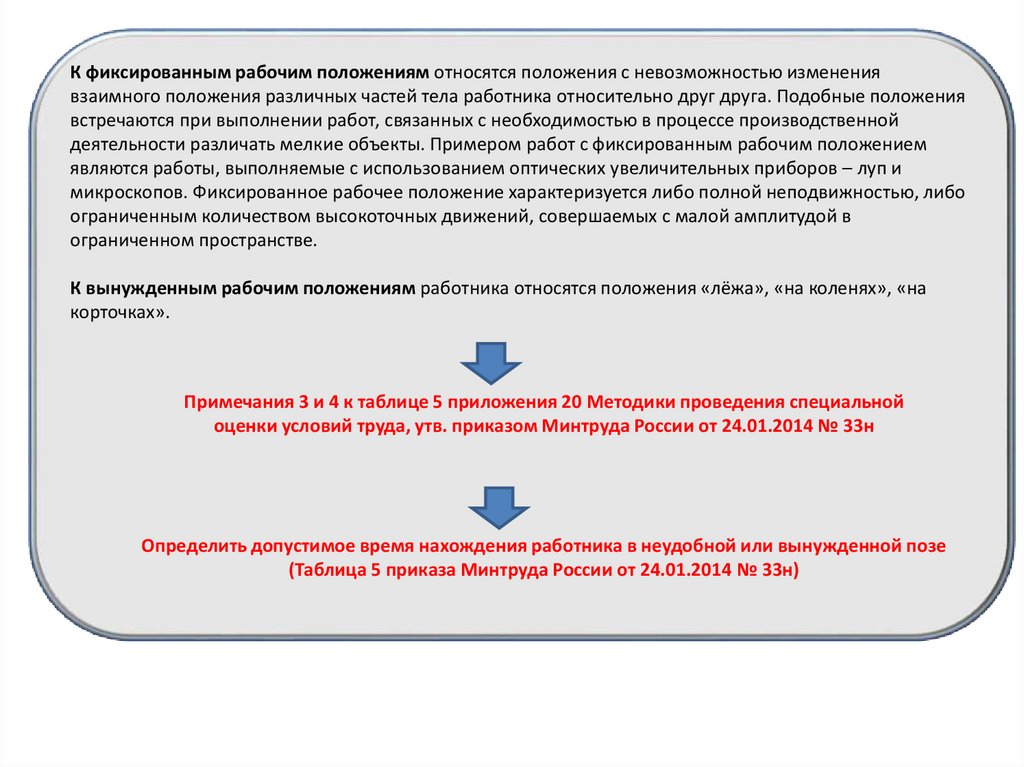 Определить допустимое время нахождения работника в неудобной или вынужденной позе