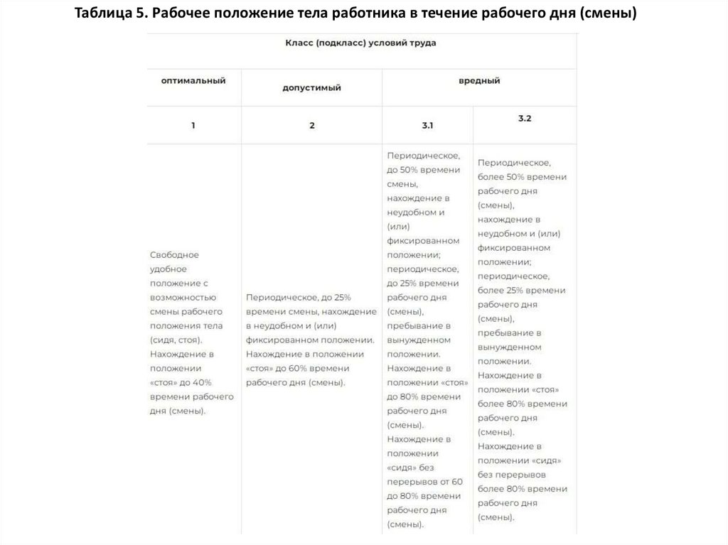 Таблица 5. Рабочее положение тела работника в течение рабочего дня (смены)15.