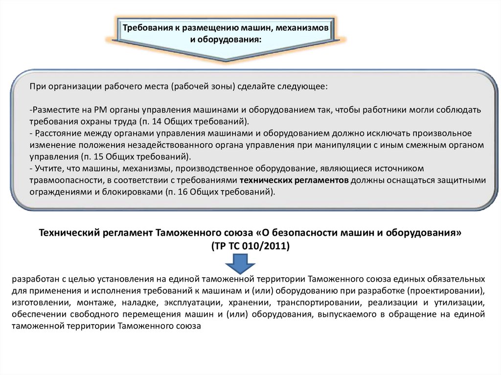 Требования к размещению машин, механизмови оборудования: