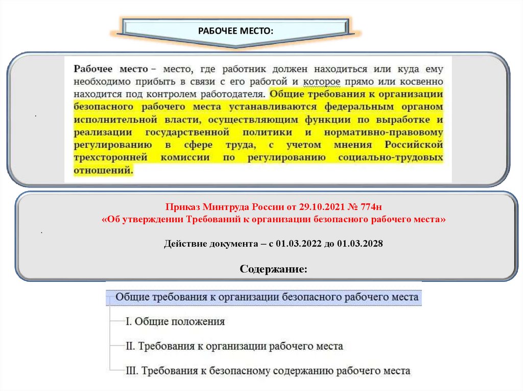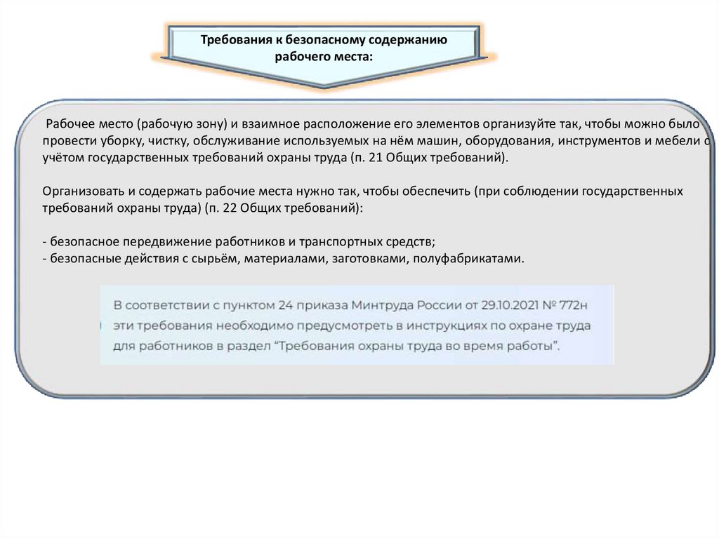 Требования к безопасному содержаниюрабочего места: