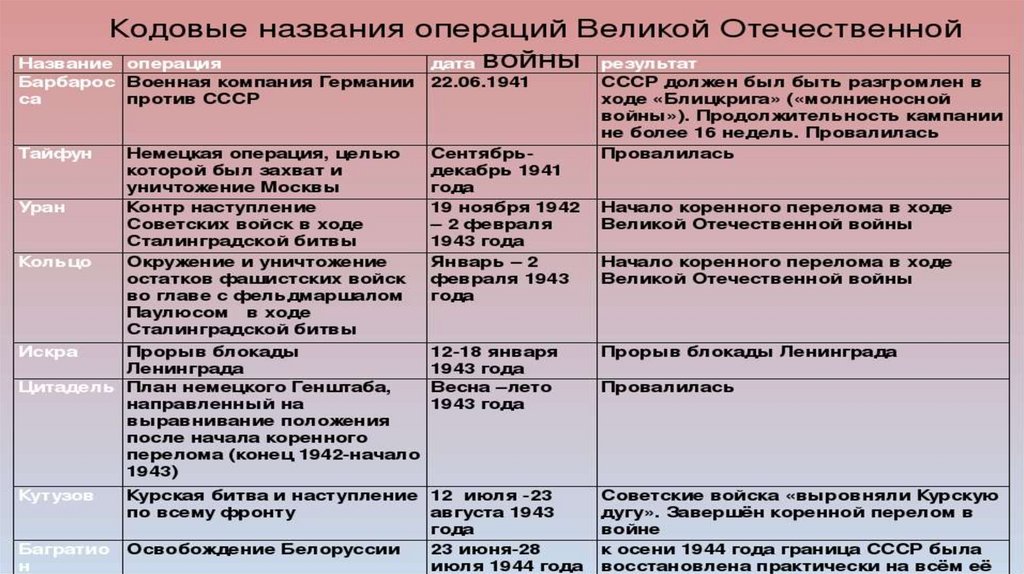 таблица в тетради), (знать даты, события,