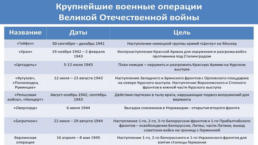 Контроль знанийВеликая Отечественная война