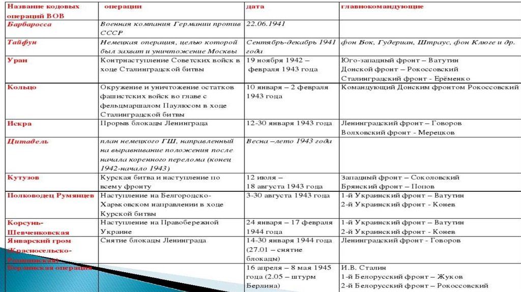•Полководцы ВОв (не менее 3)
