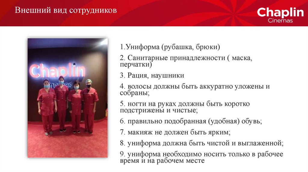 Внешний вид сотрудников1.Униформа (рубашка, брюки)