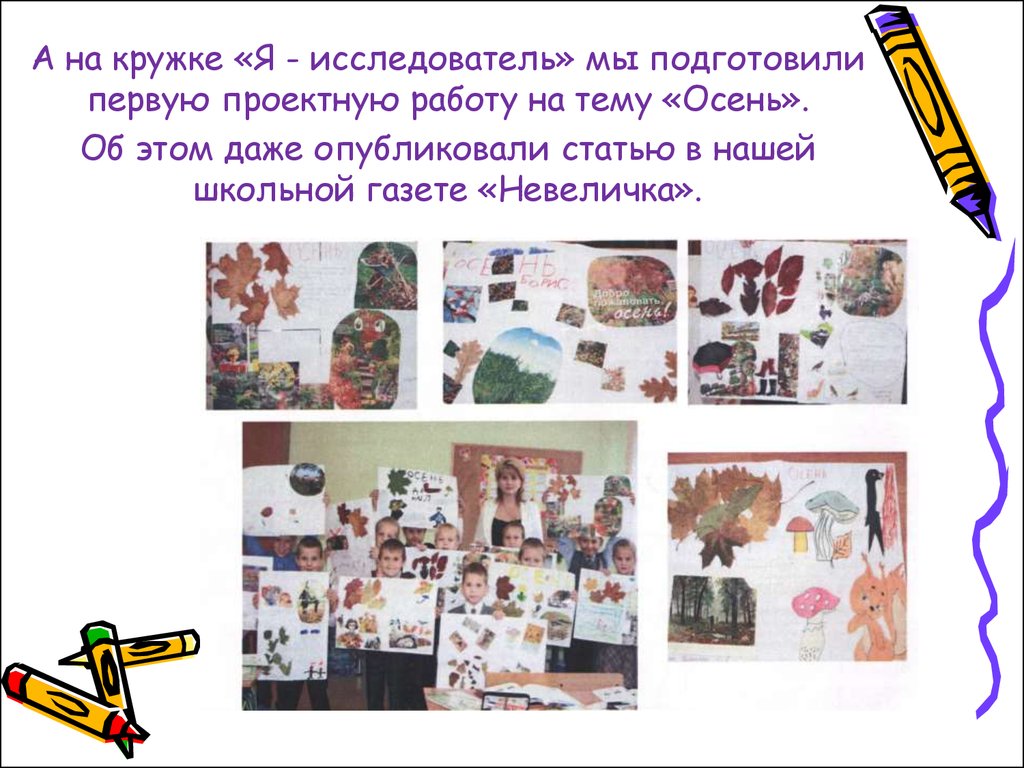 А на кружке «Я - исследователь» мы подготовилипервую проектную работу на тему «Осень».