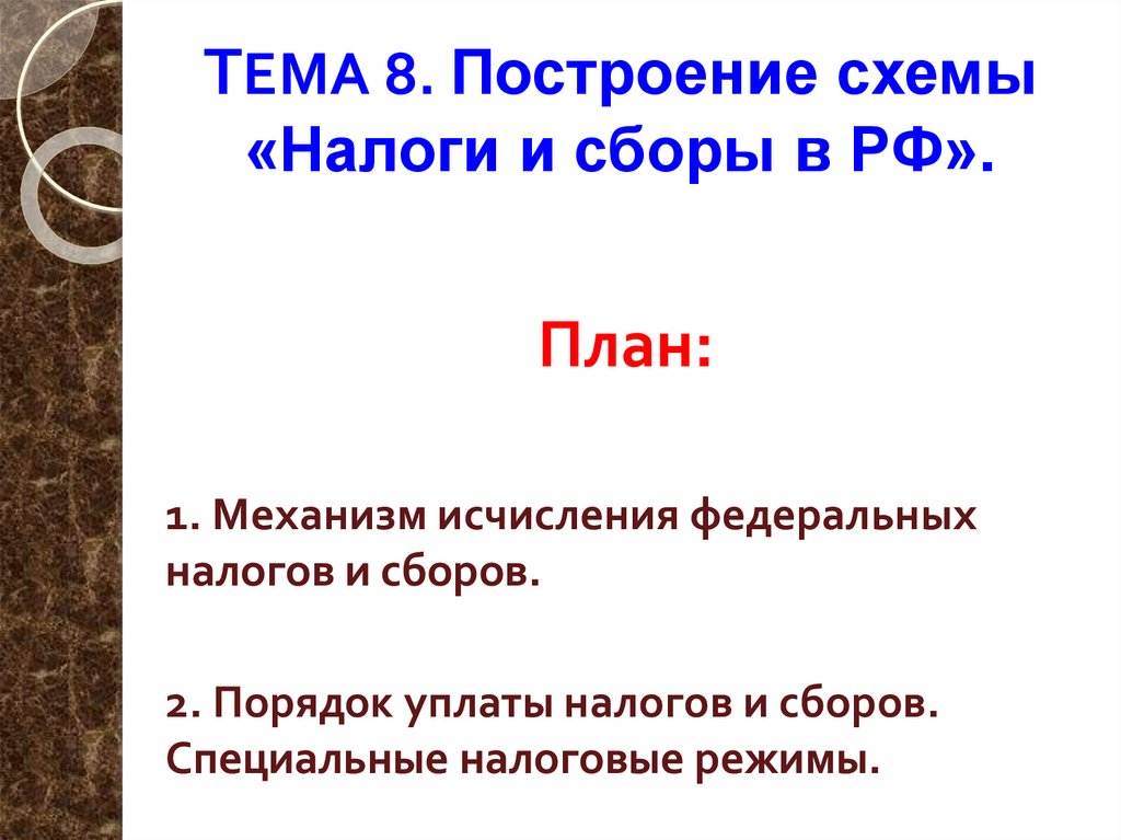 ТЕМА 8. Построение схемы«Налоги и сборы в РФ».