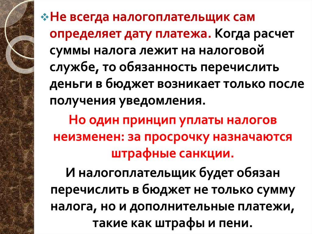 Не всегда налогоплательщик самопределяет дату платежа. Когда расчет