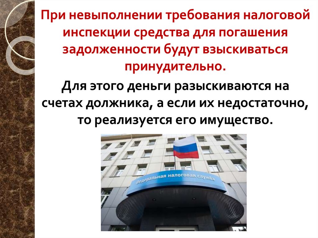 При невыполнении требования налоговойинспекции средства для погашения