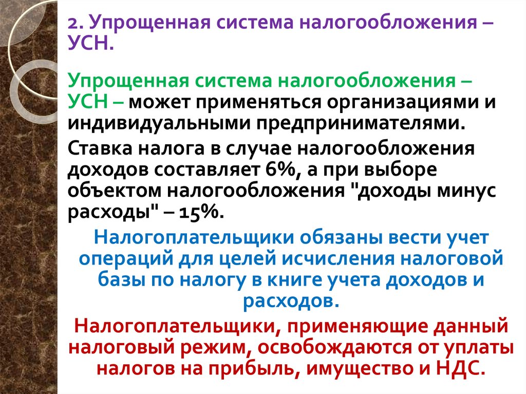 2. Упрощенная система налогообложения –УСН.