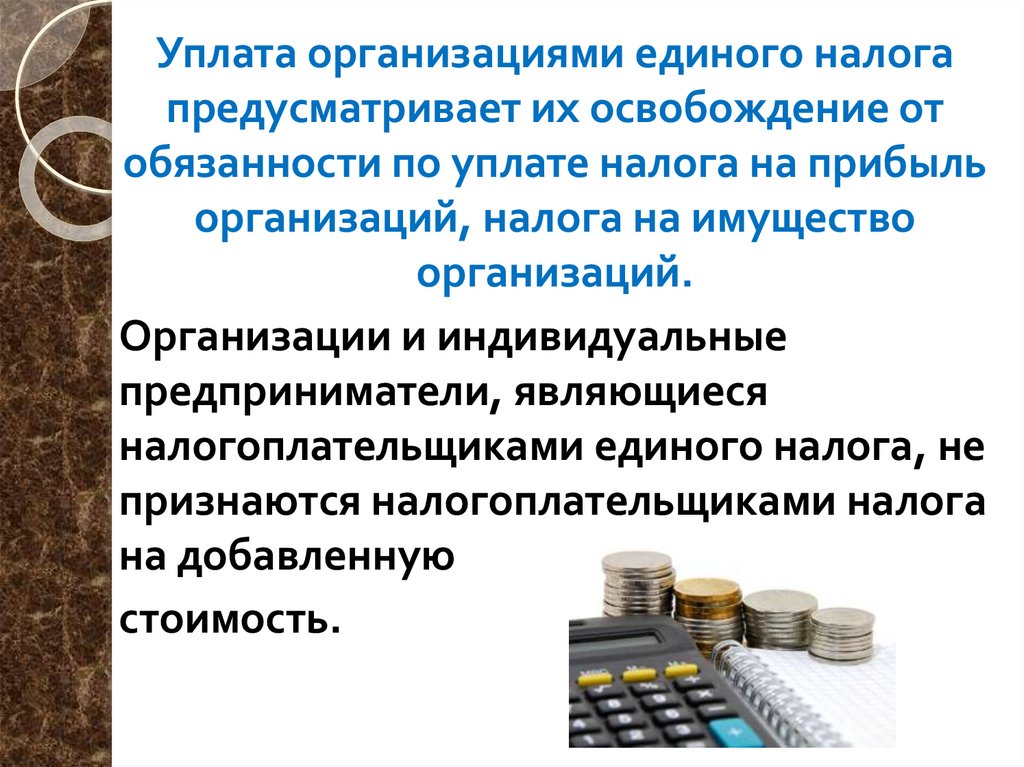 Уплата организациями единого налогапредусматривает их освобождение от