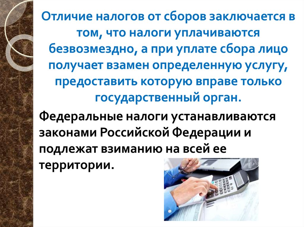 Отличие налогов от сборов заключается втом, что налоги уплачиваются