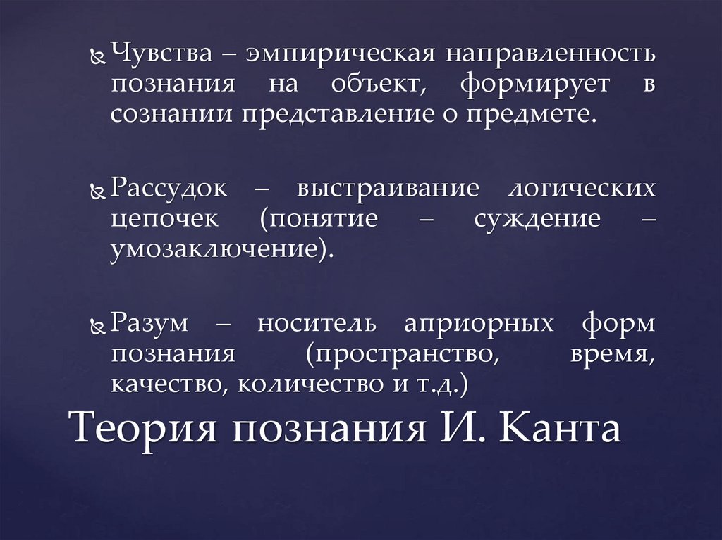 Чувства – эмпирическая направленностьпознания на объект, формирует в