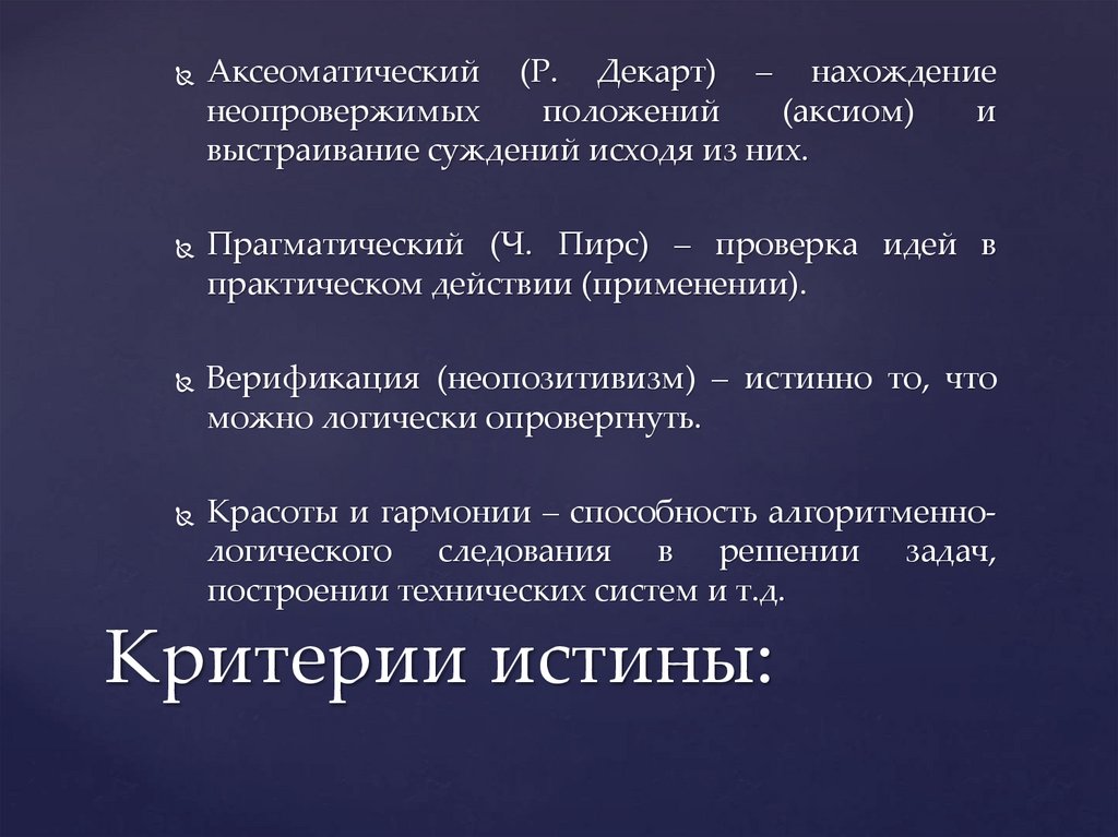 Аксеоматический (Р. Декарт) – нахождениенеопровержимых