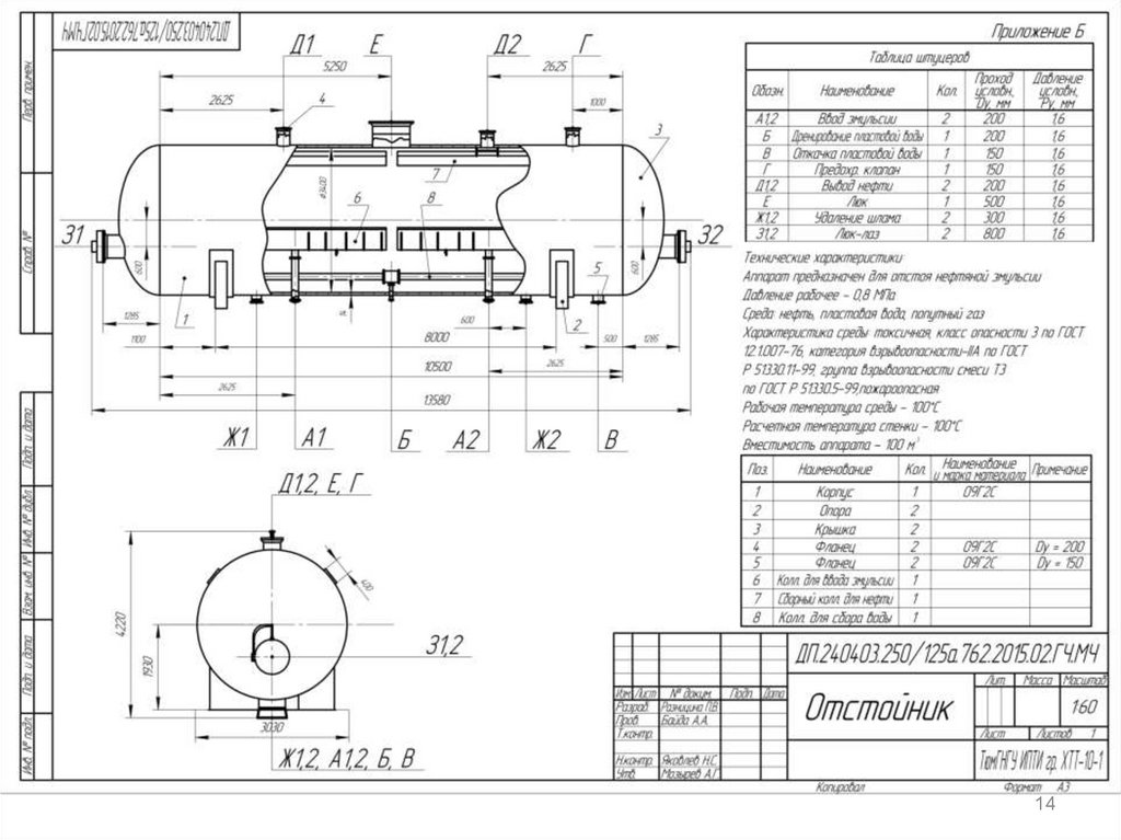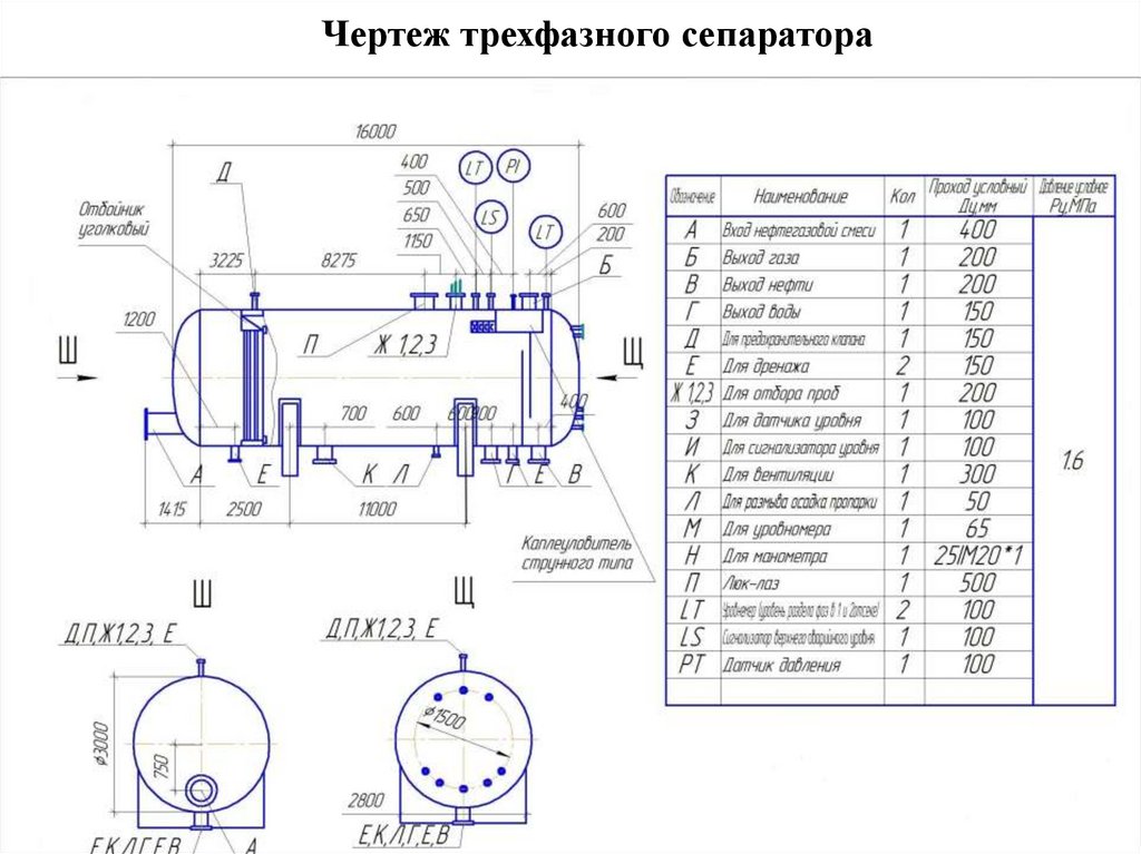 Чертеж нефтегазоводоразделителя с прямымподогревом
