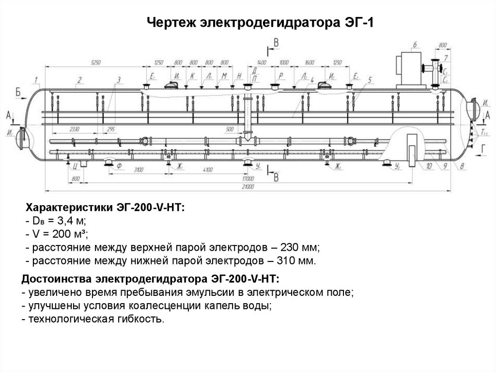 Чертеж электродегидратора ЭГ-1Характеристики ЭГ-200-V-НТ: