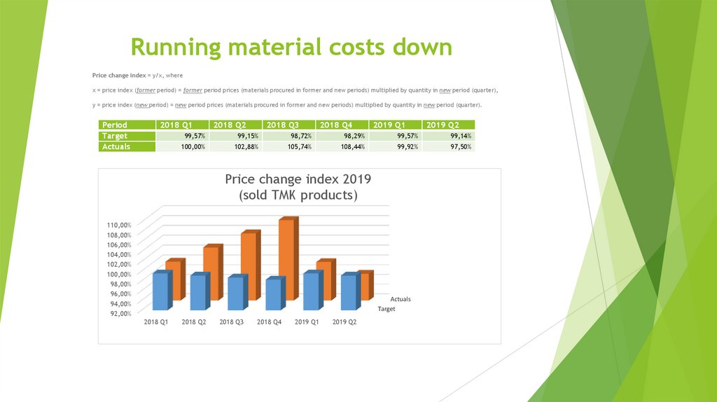 Running material costs downPrice change index = у/х, where