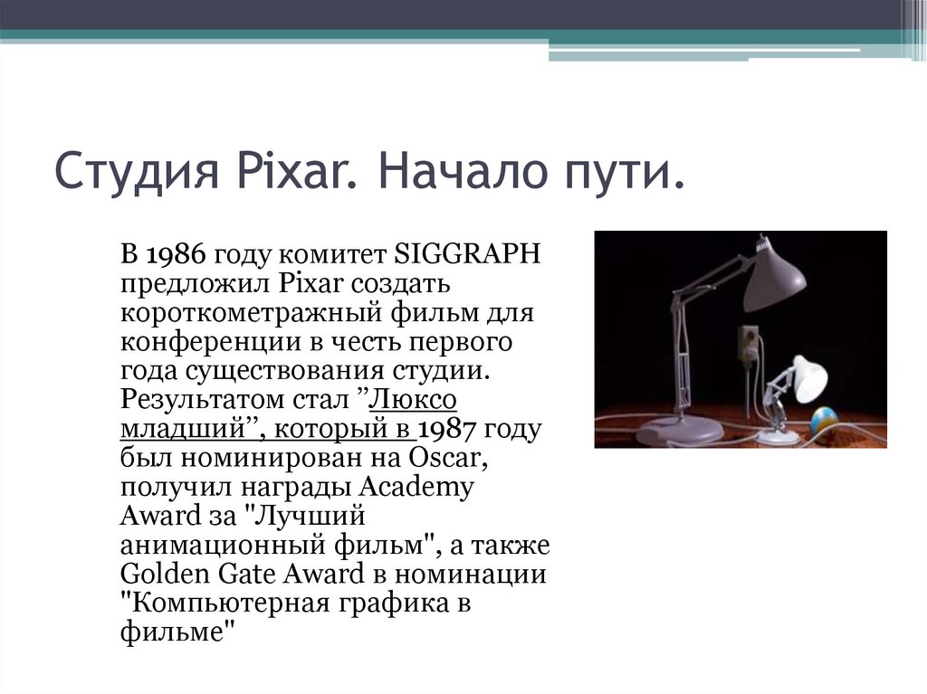 Студия Pixar. Начало пути.В 1986 году комитет SIGGRAPH