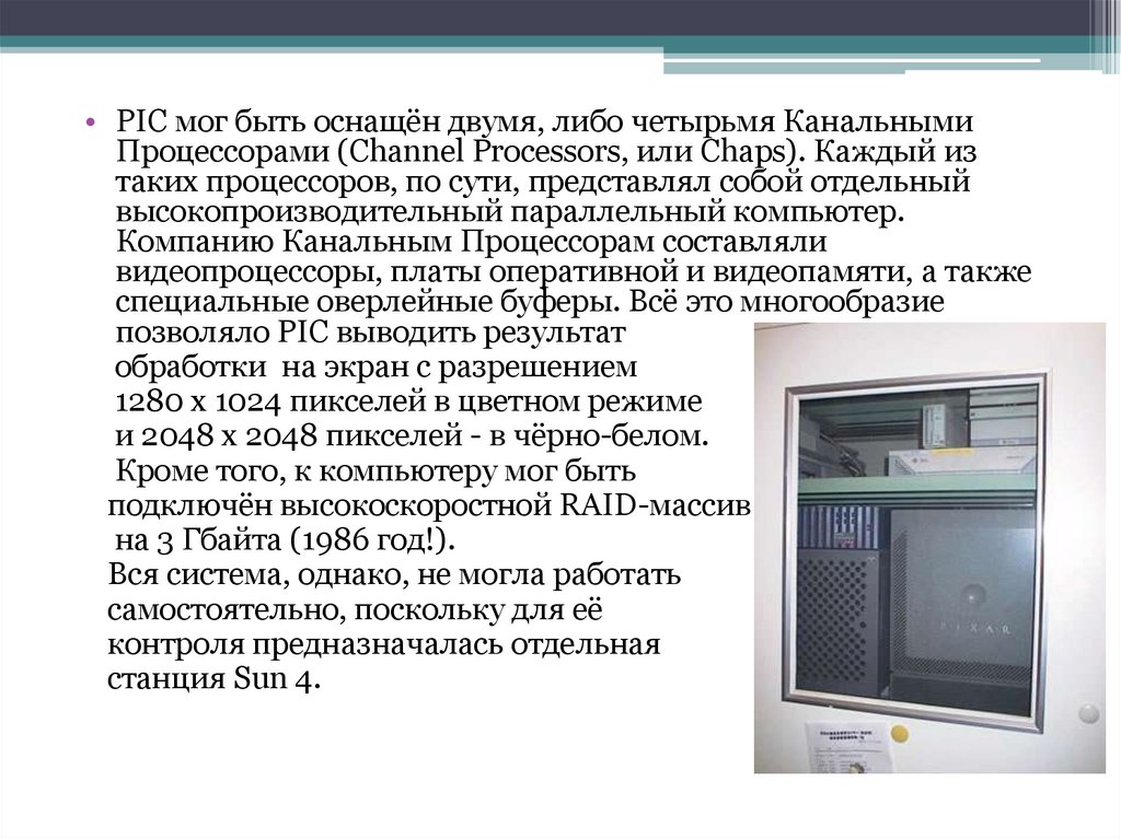 • PIC мог быть оснащён двумя, либо четырьмя КанальнымиПроцессорами (Channel Processors, или Chaps). Каждый из