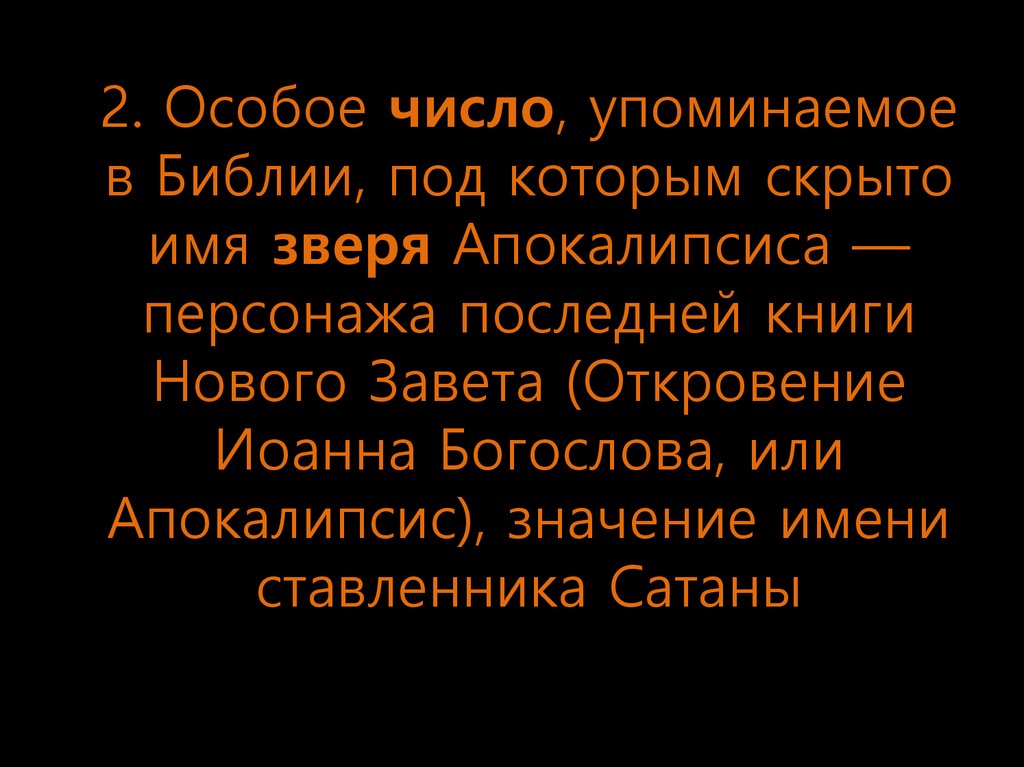2. Особое число, упоминаемоев Библии, под которым скрыто